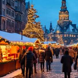 Respira la magia de la atmósfera navideña explorando los famosos mercados navideños medievales de Dresde y prueba algunos de los dulces navideños tradicionales como el famoso stollen navideño de Dresde.