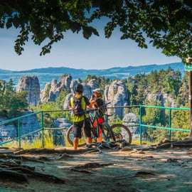 Si solo pasas un par de días recorriendo Praga, es difícil imaginar que a solo 60 minutos en coche al noreste de la ciudad se encuentre un paisaje tan accidentado y de cuento de hadas. Antes de emprender la aventura de 8 horas en bicicleta eléctrica, recibirás una charla de seguridad y te enseñarán a sacar el máximo partido a tu bicicleta eléctrica de montaña en el terreno accidentado del Paraíso Bohemio.