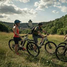 Descubre la campiña checa sobre dos ruedas, degusta buena comida y cerveza y visita el castillo medieval de Karlstejn en una excursión de un día en ebike de 7 horas desde Praga.