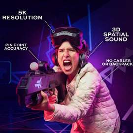 Todo ello sin cables, alambres, trajes incómodos ni mochilas. ¡Sólo tú y tus amigos pasándolo en grande!