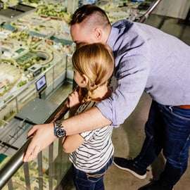 Contempla cientos de metros de vías, docenas de trenes y maquetas de coches esperándose unos a otros en pequeñas intersecciones. Está garantizada una gran diversión para todos los miembros de la familia, de 3 a 103 años.