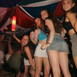 Conoce a tu anfitrión y empieza la noche jugando al beer pong, flip-cup y con body shots. Disfruta de cerveza, vino, combinados y chupitos de vodka ilimitados durante un máximo de 2 horas en una barra libre, con 7 televisores que retransmiten múltiples eventos deportivos y merchandising gratuito... ¡gafas de sol y diadema!