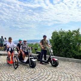 ¡Adéntrate en las panorámicas más impresionantes de Praga a lomos de una eBike o un eScooter de ruedas gruesas y suaves, con un guía local que te mostrará sus rincones más fascinantes! Disfruta de vistas privilegiadas desde miradores emblemáticos como la encantadora Ciudad Pequeña y la colina de Letná, donde la perspectiva de Praga te dejará sin aliento.
