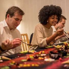 Te invito a que empieces con bocados que despierten tu apetito, continúes con comidas deliciosas y descubras nuevas combinaciones de sabores. Termina la velada con una espectacular pintura comestible como postre.