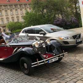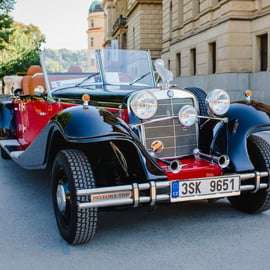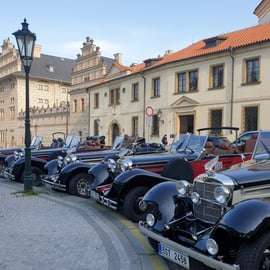 ¡Sumérgete en el encanto de la Praga antigua a bordo de un clásico! Disfruta de un recorrido de 90 minutos en una réplica artesanal del Mercedes 770K, una experiencia inolvidable. Relájate en nuestro descapotable (con capota retráctil para cualquier imprevisto) mientras una audioguía multilingüe te guía a través de los lugares más emblemáticos de la ciudad.