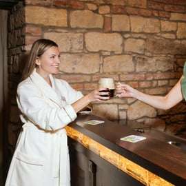 Ciesz się idealnym połączeniem wellness i tradycji w praskim spa piwnym i winnym. Wybierz kąpiel winna, piwna lub wellness z nieograniczoną ilością napojów. Zrelaksuj się po całym dniu, zanurzając się w wannie z piwem lub kąpielach terapeutycznych. Oddaj się rytuałom kąpielowym związanym ze starymi czeskimi tradycjami. W kąpieli piwnej otrzymasz nieograniczoną ilość piwa. W kąpieli winnej otrzymasz 2 kieliszki Prosecco.
