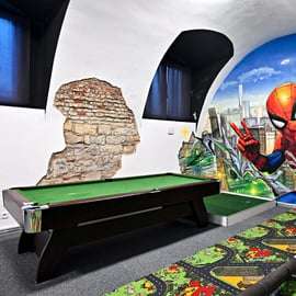 Ciesz się zabawną rundą minigolfa w Mazemania w Pradze. Zagraj na wyjątkowym polu z 18 dołkami w oryginalnym otoczeniu, takim jak boisko sportowe, salon lub ogród.