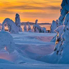 A trilha leva você através de árvores cobertas de neve e de vez em quando você tem um vislumbre das Montanhas Gigantes no leste, nas vizinhas Alemanha e Polônia no norte e em um dia claro, até Praga no sul!