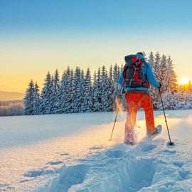 Seu guia lhe dará breves instruções no início da caminhada e mostrará como é fácil usar raquetes de neve. Pode-se dizer que, se você pode andar, também pode andar com raquetes de neve! Pegue seu equipamento, incluindo um frasco de chá quente e um farol (lanterna) e pronto!
