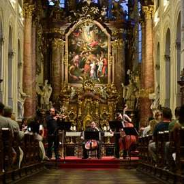 Mergulhe na magia de um concerto de música clássica no magnífico Klementinum, com a deslumbrante Ponte Carlos como cenário. Deixe-se envolver pelas obras-primas de mestres imortais como Vivaldi, Mozart, Beethoven, Bach e muitos outros, numa experiência musical inesquecível no coração de Praga.