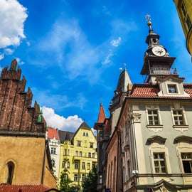 Um charmoso bonde elétrico o levará até o Castelo de Praga, o maior complexo de castelos da Europa. Após um breve intervalo para um café revigorante, explore o encantador Bairro Judeu e a Cidade Velha, percorrendo suas ruas de paralelepípedos e vielas pitorescas.